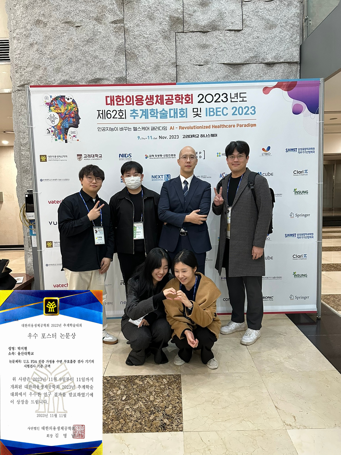 2023년 추계학술대회에서 박지현 연구원이 FDA 인증을 받은 가정용 수면 무호흡증 검사(HSAT) 기기들의 국제 시험검사 기준 규격에 대한 연구로 우수 포스터 논문상을 수상했습니다.